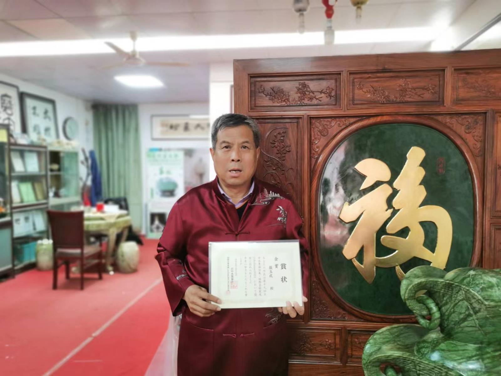 来自中国、日本、韩国、马来西亚、泰国五个国家的120位工艺大师、美术家、设计师的150件入选展出,参加了国际艺术家展的“优秀作品评比”。经过评委组两轮评选,中国玉雕大师、玉雕非遗传承人张玉成的新疆五彩玉蟾作品——《财源滚滚》最终荣获本届展览的《金奖》,同时被授予组委会“日中(横滨)国际艺术家”荣誉身份,将日后两国民间交流中担起重任。